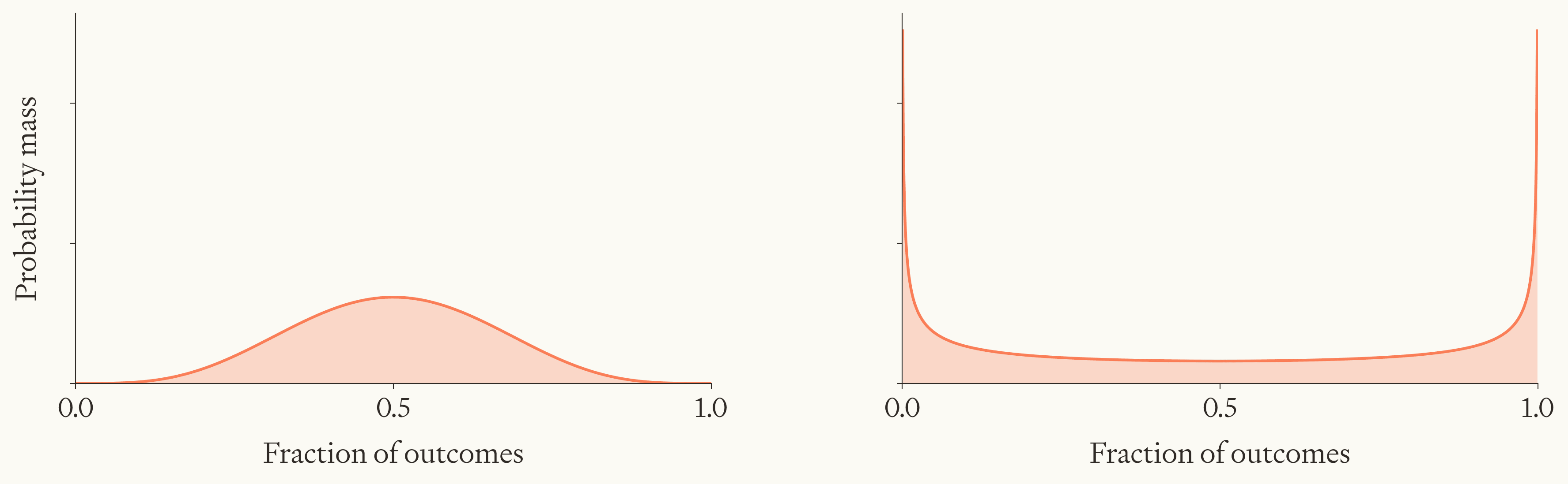 Suppose you think that the chance that humanity flourishes is 10%. That could be because flourishing is responsive to actions people take today, and hence — not knowing what actions people will take — properly chancy.