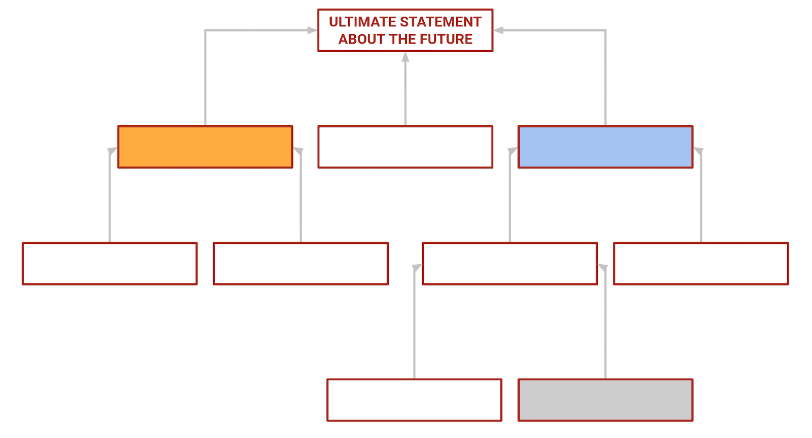 Now Julie and I can look at each other's models and zero in on our fundamental disagreements. For me, the blue crux represents the highest-VOI thing, or the relevant dominant uncertainty[2]; for Jane it's the orange. I'm relatively uncertain whether it will happen or not, and whether it happens has a lot of bearing on my thoughts about U.