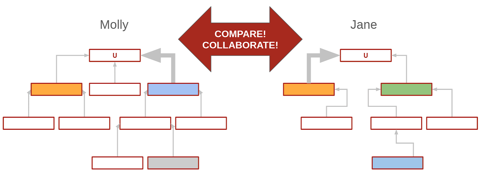 The green crux is part of Jane's model and not part of mine yet—it's something I haven't factored in yet. Maybe I want to add it to my model! Maybe I disagree with Jane about how likely it is to resolve positively or how it would affect U, but I should consider it. I could even try using the structure of Jane's model—we could call this her decomposition—and assigning my own probabilities to it; then see what I get.