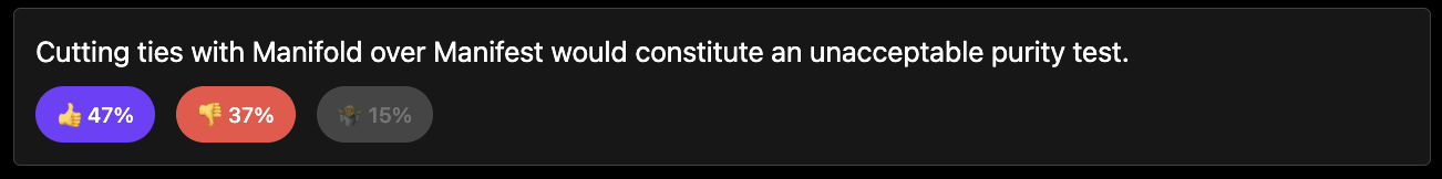 I would guess that the manifest crowd meaningfully adds to the decisionmaking capabilities of EA by sometimes coming up with very valuable ideas, so I think I disagree with the conclusion here.