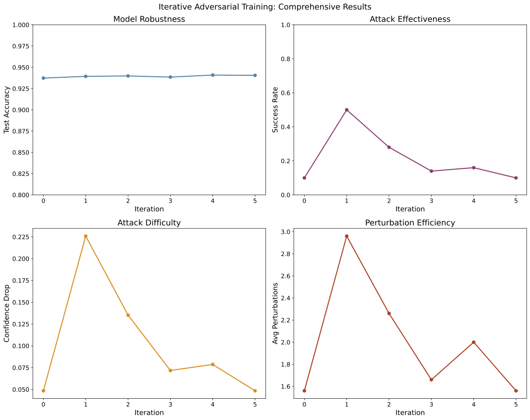 - Adversarial Training: Adding only 25–60 “malicious” sequences (<0.2% of data) significantly exposed the model’s weaknesses, but after a few rounds of training on these examples the robust accuracy recovered to >90% .