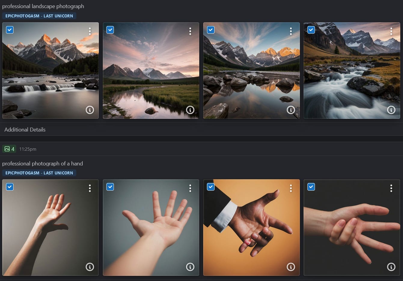 - If you're not trying to specifically generate hands, but just don't want to see incidentally bad hands in images with humans in them, get rid of all hand-related prompts, LoRAs, textual inversions, etc., and just putting "hands" in the negative prompt. This doesn't eliminate all hands but reduces the number/likelihood of hands in the picture and also makes the remaining ones look better. (The idea behind this is that it makes the AI "try less hard" to generate hands, and perhaps focus more on central examples that it has more training on. I was skeptical when first reading about this on Reddit, especially after trying many other similar tips that failed to accomplish anything, but this one actually does seem to work, at least much of the time.)