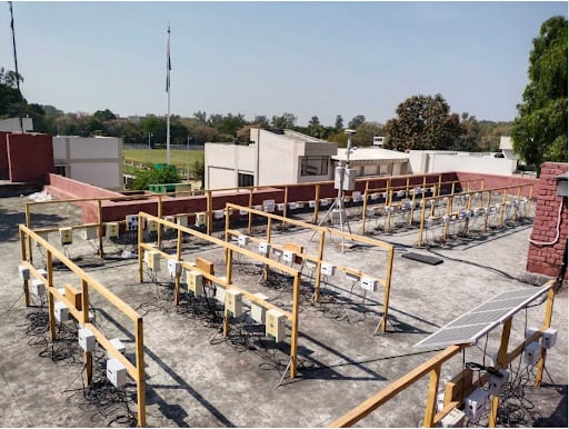 Low-cost air quality monitors undergoing calibration before field deployment. Photo courtesy of IIT Kanpur