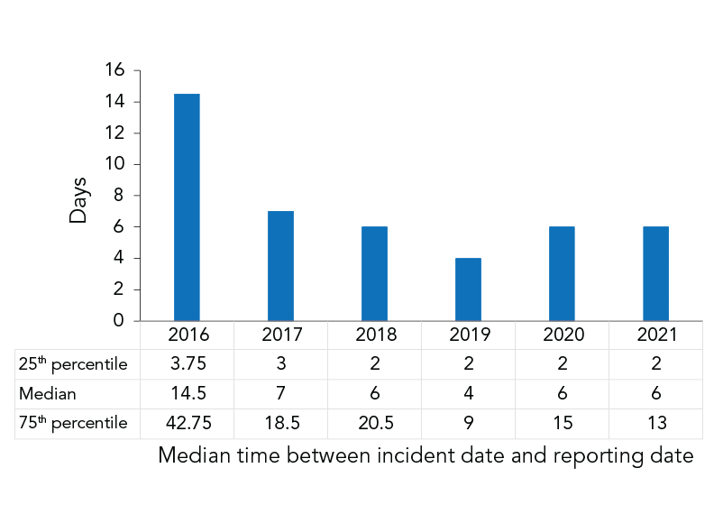 - Reporting incidents is mandatory and is close to real time.