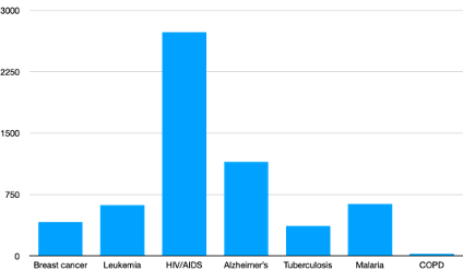 It is slightly unclear how much overlap with other funding categories there are. For example, research regarding “certain diseases of the respiratory system” received $132.75 million in funding but it is unclear whether any or if how much of this funding also supported research work on COPD. While this may change funding levels, it does not change the overall conclusion that COPD research is underfunded.
