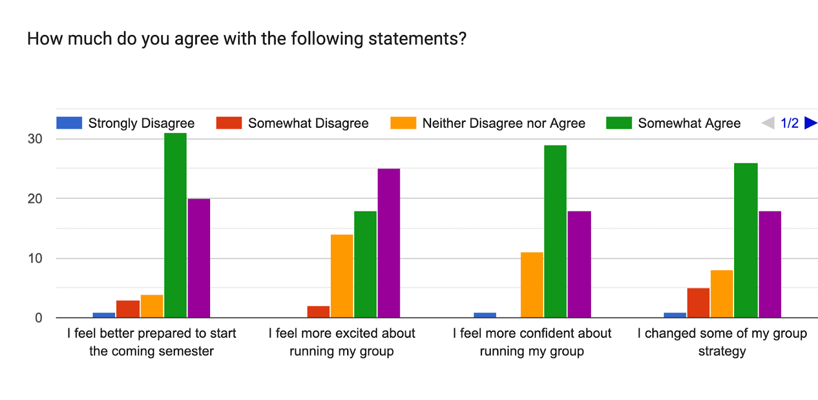 (Purple is cut off but is “Strongly Agree”)