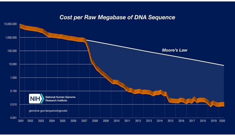 Wetterstrand, K. A. (n.d.). The cost of sequencing a human genome. National Human Genome Research Institute. Retrieved August 31, 2024, from https://www.genome.gov/about-genomics/fact-sheets/Sequencing-Human-Genome-cost