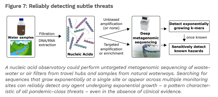 “The case study dramatising the importance of early detection used a much older technology: in 2013, Israel’s poliovirus-specific environmental monitoring program detected a nascent outbreak in wastewater samples from the town of Rahat using plaque assays and swiftly initiated mass oral vaccination, eliminating the virus before even a single child came down with paralytic symptoms (Brouwer et al., 2018). Today, we have the potential to detect any virus or invasive species, even novel pandemic-class agents unknown to science, through the comprehensive metagenomic sequencing of waterways. Here we propose to build a Nucleic Acid Observatory to continuously monitor the global environment for past, present, and future pandemic viruses and invasive pests.” (NAO Consortium, 2021).