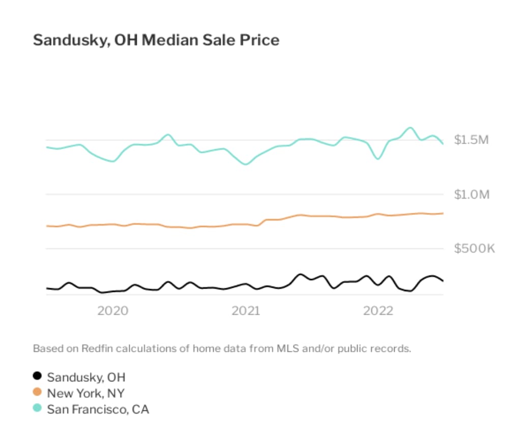 Sandusky is much cheaper than the usual places where EAs tend to gather. According to Redfin (Redfin n.d.), the median price of Sandusky home prices for July 2022 was $200K, as compared to $825K for NYC and $1,460K for SF. In times of remote working, places like Sandusky might offer EAs a chance to work from one place, offering an alternative to living in the most expensive places in the world. Living costs as well as costs associated with running an EA hub in Sandusky are much more favorable and would buy EAs better housing and healthier work environments for far less money.