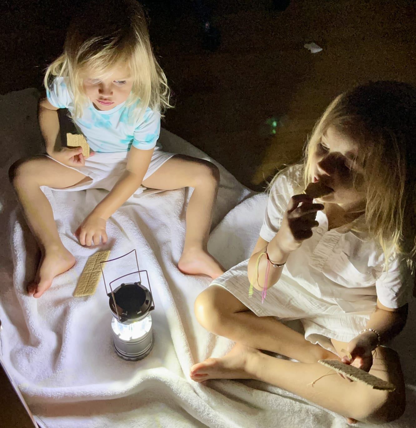 We had a back and forth about it, and ultimately I decided to go ahead and get them something, even though I wasn’t fully convinced they were hungry. So I went ahead and made a little "midnight feast" picnic of graham crackers.