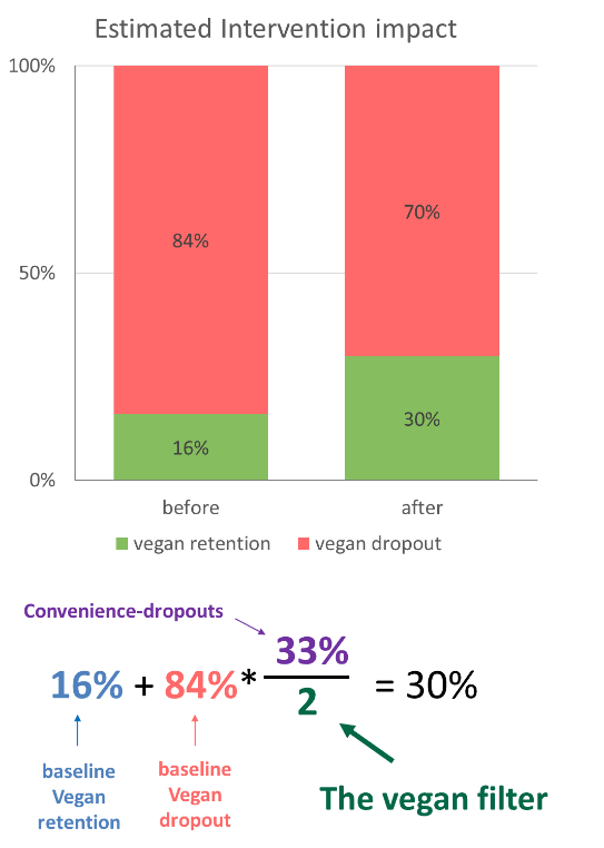 - 16% baseline vegan retention (Faunalytics, 2016)