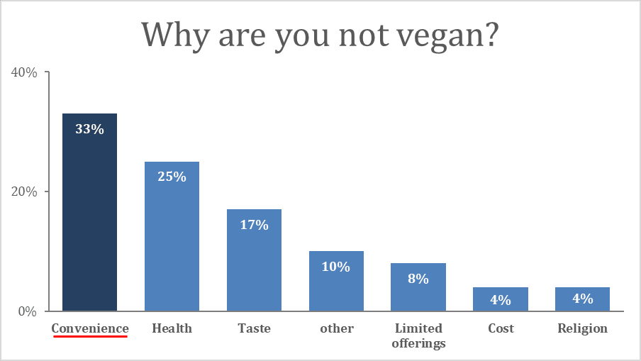 Recent data from the China Vegan Survey 2024 reinforces this conclusion: inconvenience is the leading barrier preventing flexitarians from adopting a vegan lifestyle.