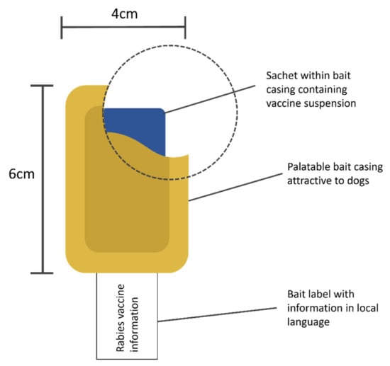 Oral rabies vaccines (ORV) could help close the vaccination gap, since they are better-suited to target stray and free-roaming dogs (WOAH, 2022; Freuling et al., 2023). Instead of injecting the vaccine, oral vaccines can be administered without touching or coming too close to a dog. ORVs usually come in liquid form, contained in a plastic sachet and inside a bait, which the dog will eat. When chewing the bait, the dog perforates the sachet and the vaccine is released into the dog’s mouth, where it is taken up by the palatine tonsils (Yale et al., 2022).