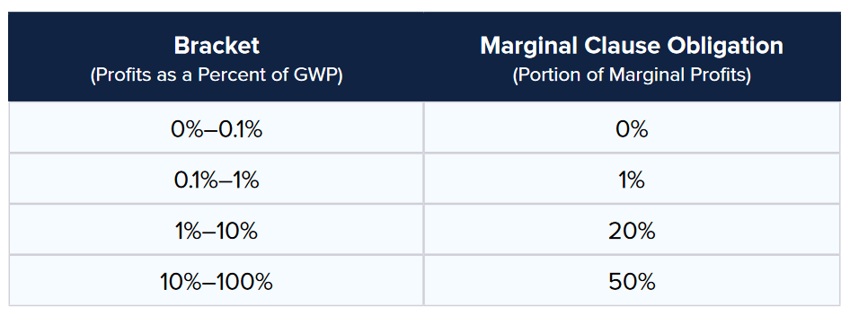 The Clause operates by getting firms now to sign up to donate a large fraction of their profits for the benefit of humanity if those profits become very large. The idea is that, right now, profits are not very large, so this appears a ‘cheap’ commitment in the short term. In the future, if the firm becomes very successful, they are required to donate an increasing fraction.