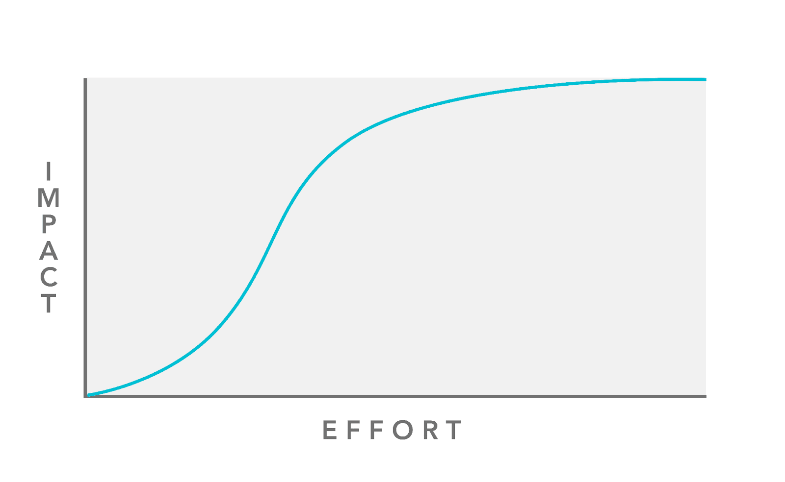 社会的インパクトも同様で、ある問題に取り組む人がほとんどいない段階では、一人の行動によって前進を遂げる機会がたくさんあるのが普通でしょう。ところがその分野でより多くの仕事が行われるようになると、独創的で大きなインパクトを与えることが難しくなっていきます。それは以下の状況です: