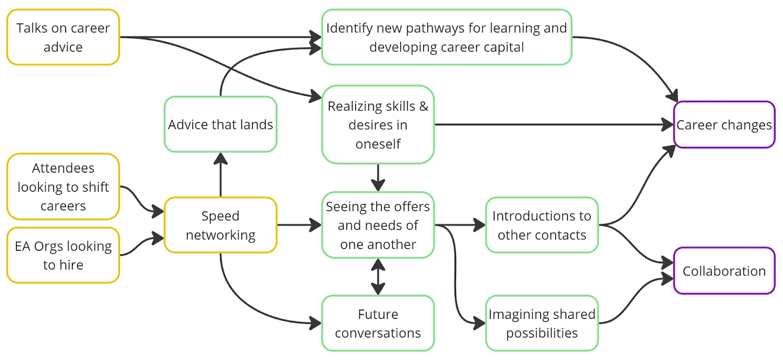 Liav: I think the general theory of change for these kinds of events is that it’s pretty high impact to get a bunch of people who have a minimum bar of familiarity with effective altruism in the same room together… You can give them high quality content, but also time to talk and network and meet each other, either to forge new connections or reinforce some existing connections. This can be very impactful.