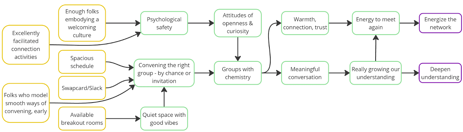 Wading through the complexity, as a practice, trains our intuition to more naturally sense these leverage points, and sense when a system may not perform as predicted. When I look at the upcoming EAGxToronto, I see a few leverage points that seem to connect many inputs with multiple outcomes: