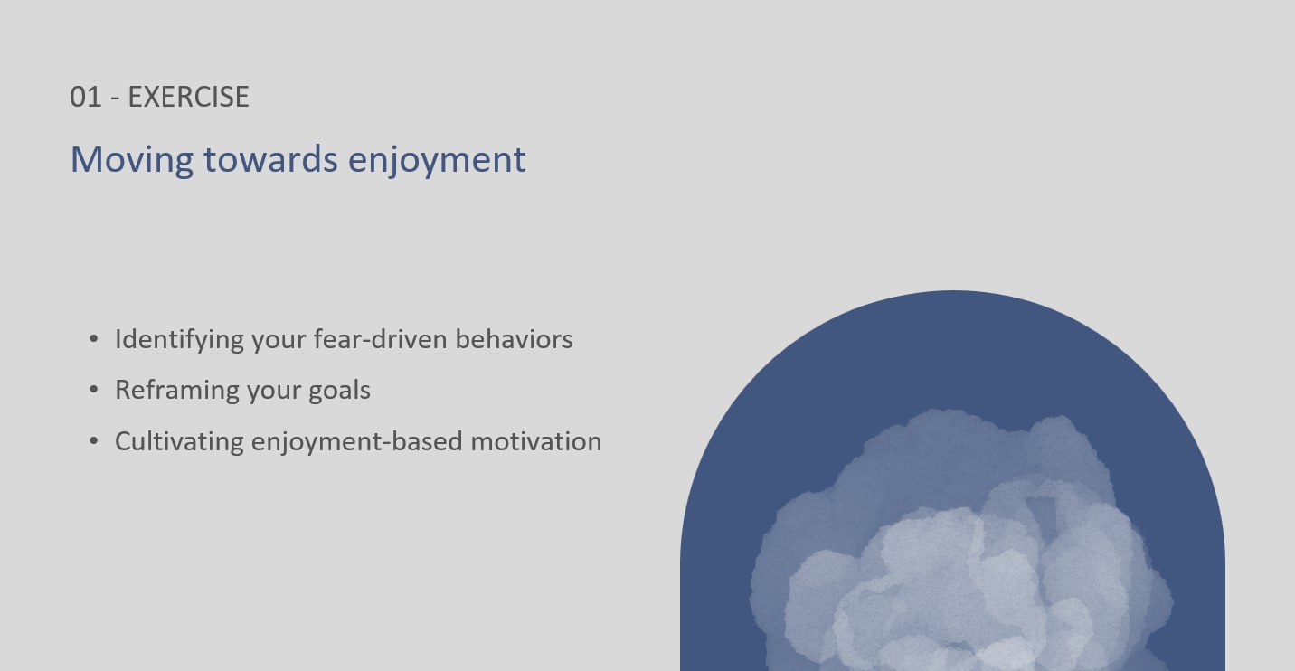 What else can be helpful in order to build sustainable motivation? To me, approach-based motivation is well captured by enjoyment; when you enjoy your experience at work more often, you can prevent burnout and feel like you can do your job for a very long time. You might reflect on what word best captures what you want your sustainable motivation to be about.