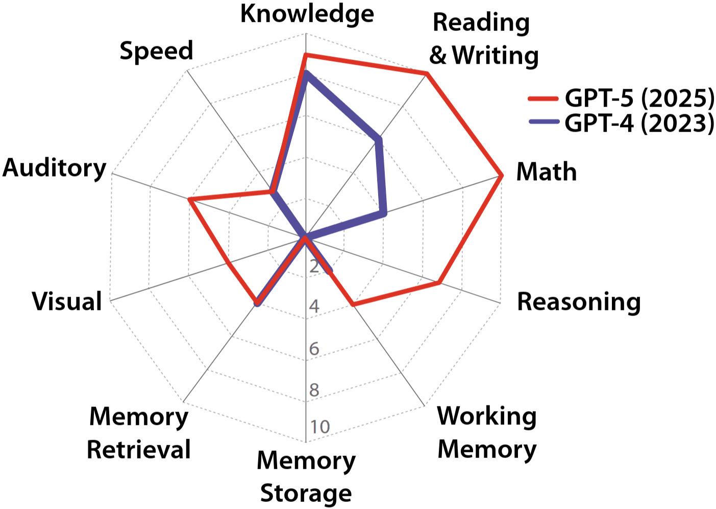 To determine whether an AI meets this definition, the researchers measure 10 characteristics of general intelligence typical of well-educated adults, finding that while current AIs match human abilities in some of these skills, there are several core skills that are deficient or missing in current models: