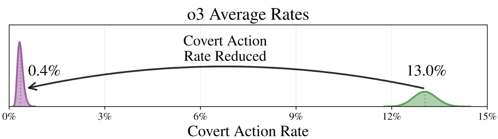 The Anti-Scheming researchers use deliberative alignment, which involves training a model to reason about how to follow a list of alignment rules from the developers. This significantly reduces the measured rate of taking misaligned actions in o3 to less than 1% in test environments.