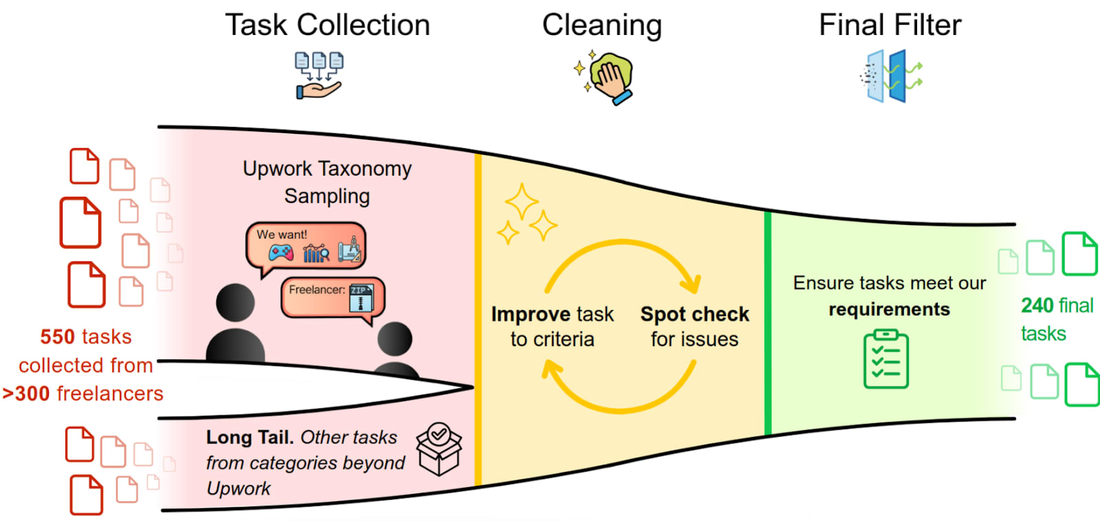 - High-quality artifacts obtained from online project repositories representing uncommon types of work such as specialized data visualization software and custom audio controllers, helping to capture and measure the broader remote work economy, rather than just what is typically posted on freelancing platforms.