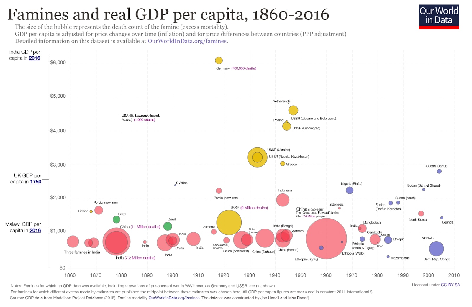 I believe that depends on the details of the catastrophe. Famines have been decreasing due to increased food supply, improved health, reduced poverty, democratization, and reduction in the number of children. Accordingly, I guess most famine deaths due to the climatic effects of nuclear war will be in Sub-Saharan Africa. Although my best guess is that activities to decrease these deaths (e.g. resilient food solutions) would improve the longterm value, I think there is significant uncertain for me to say it is unclear whether they are beneficial/harmful (in the same way that I say an event may happen or not happen if the probability of occurence is sufficiently far from 0 and 1). In any case, it is not sufficient to have a high correlation between improving the longterm future and decreasing famine deaths due to the climatic effects via activities related to resilient food solutions: