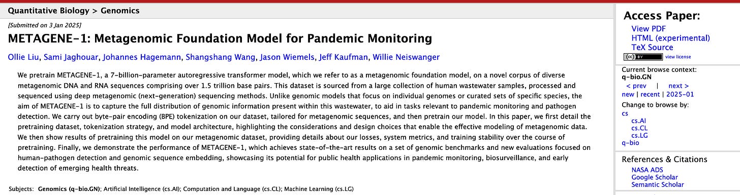 This is quite promising. This is a bonafide, national-scale attempt to detect both known and unknown biological threads, and it works! They are also doing some interesting ML work in being able to automatically detect, via a metagenomic language model, whether unknown metagenomes are simply uncharacterized, innocuous microbes (i.e. nearly all microbes) or human-targeting pathogens worth worrying about.