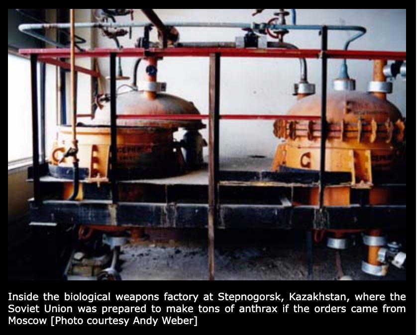 Building 221 at The Scientific Experimental and Production Base at Stepnogorsk housed 10 four-story-high, 20,000-liter fermenters and could make 300 metric tons of anthrax in 10 months. Other production lines at Kurgan, Penza, and Sverdlovsk could add hundreds more tons to the USSR’s prodigious capability to make biowarfare agents and fill munitions on short notice.