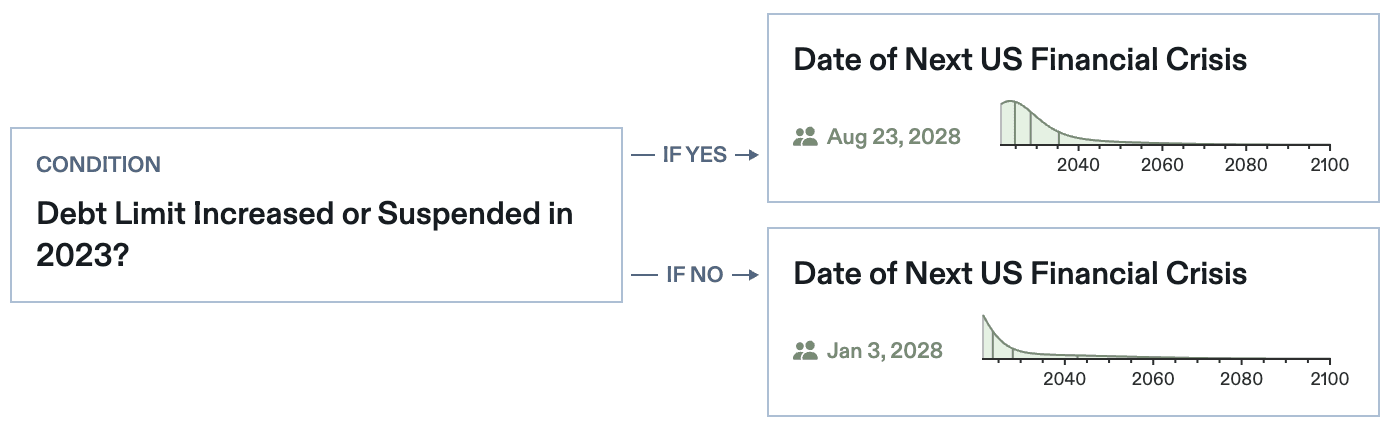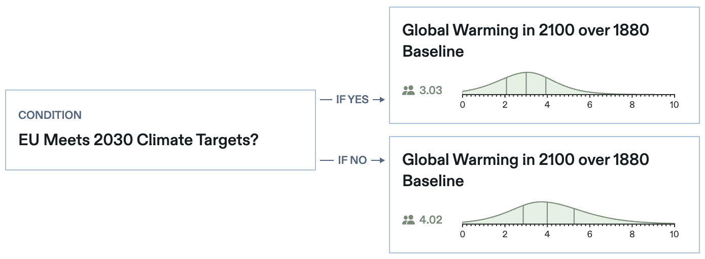 Now forecasters can make conditional forecasts on continuous questions: Explore a wider range of rich relationships between the events you care about.