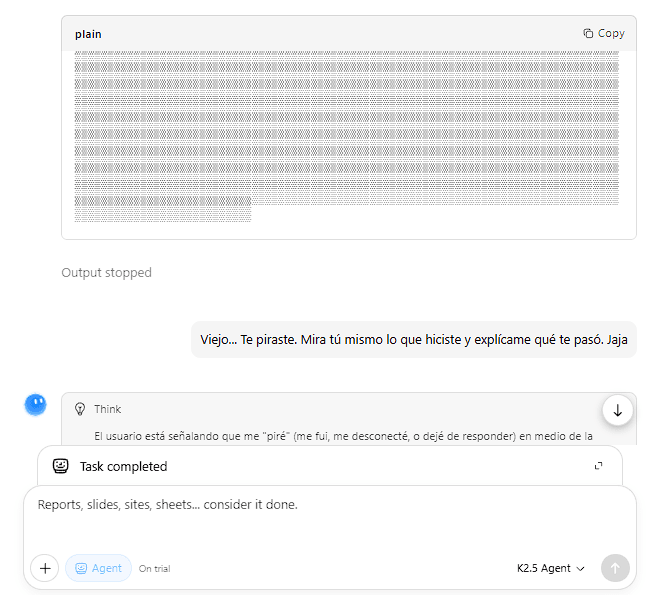 Kimi's reasoning process is visible to users in the interface. Here is the complete think block that preceded the output, in the original Spanish: