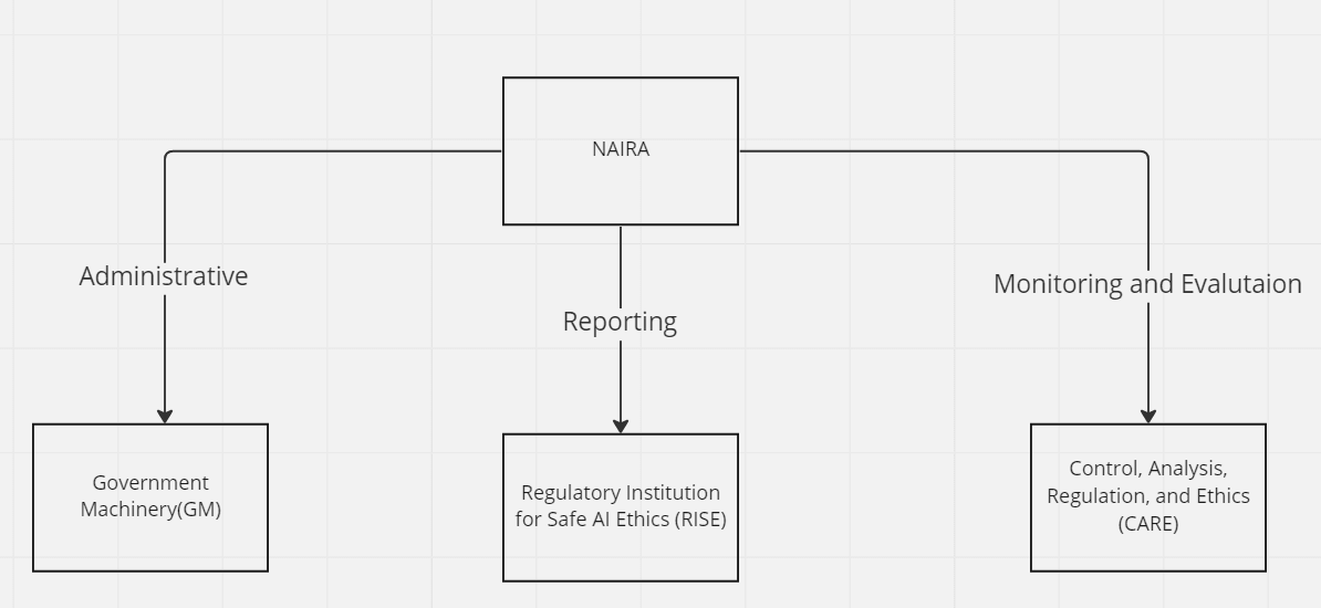 We propose a government body called NAIRA (National Artificial Intelligence Regulatory Authority) consisting of 3 sub bodies: