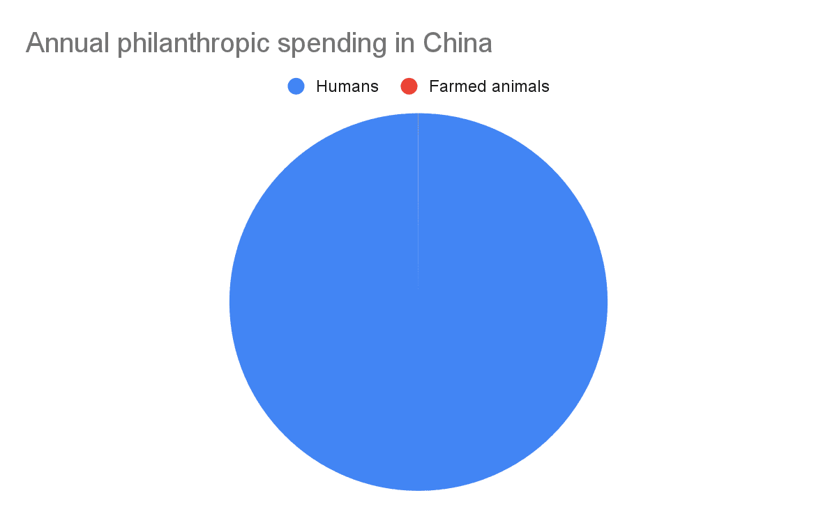 I estimate China accounts for 33.3 % of the disability of farmed animals, but only 2.20 % of the philanthropic spending on farmed animals. I suppose one could argue these numbers are interesting, and the title could reflect them, but I am wary of communicating that more funding should to China without having looked into the respective cost-effectiveness (i.e. not only scale and neglectedness, but also tractability, which is arguably lower in China).