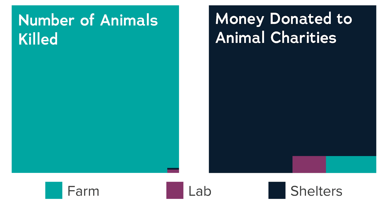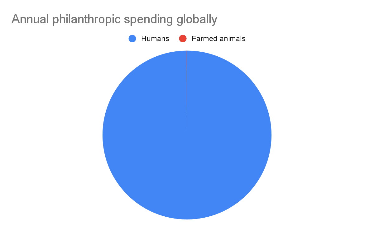 - The annual funding helping farmed animals is much smaller than that helping humans.