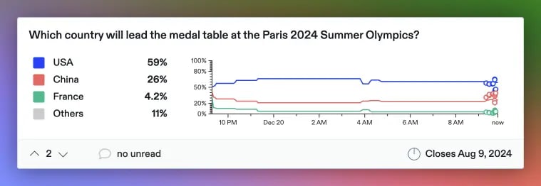 For now, only Metaculus admins can create multiple choice questions, but we want to hear from the forecasting community: Are there multiple choice questions you want to see on Metaculus? We hope you share them and any other thoughts or feedback.