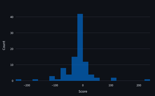 Below is an unweighted histogram of the head-to-head scores of the bot team.