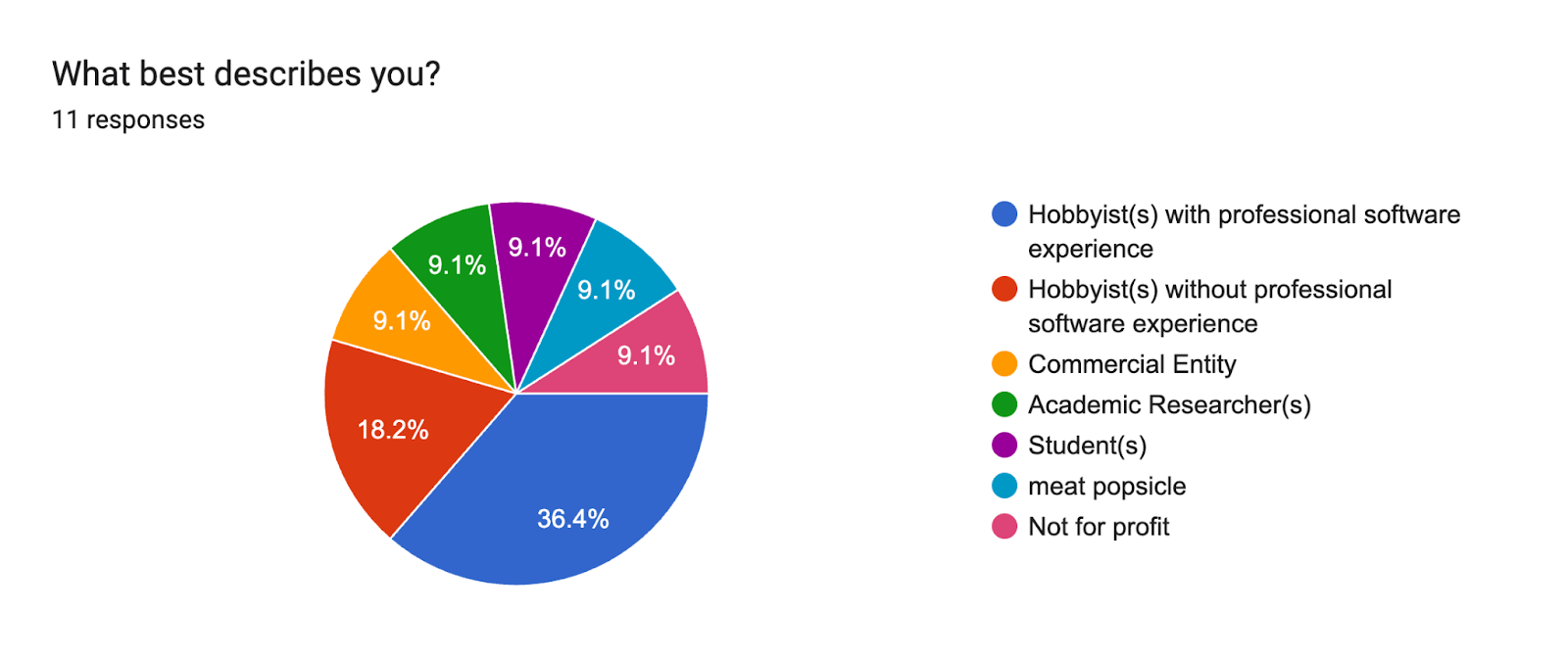 - What best describes you?: Hobbyist(s) with professional software experience