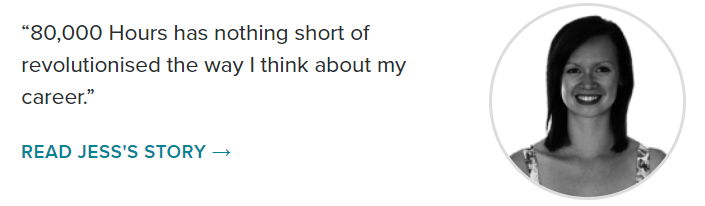 今日に至るまで、何千人もの人々が、我々のキャリアアドバイスに従うことで自分のキャリアパスを大きく変えてきた。その多くは、当初は興味がなかったものの、世界にとって重要だと信じた分野に転職した。スキルを磨き、一緒に働く良い仲間を見つけ、適切な職務を見つけたいま、彼らは深い満足感を得ている。