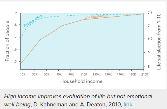 Killingsworth, Matthew A., Daniel Kahneman, and Barbara Mellers. “Income and emotional well-being: A conflict resolved.” Proceedings of the National Academy of Sciences 120.10 (2023): e2208661120.