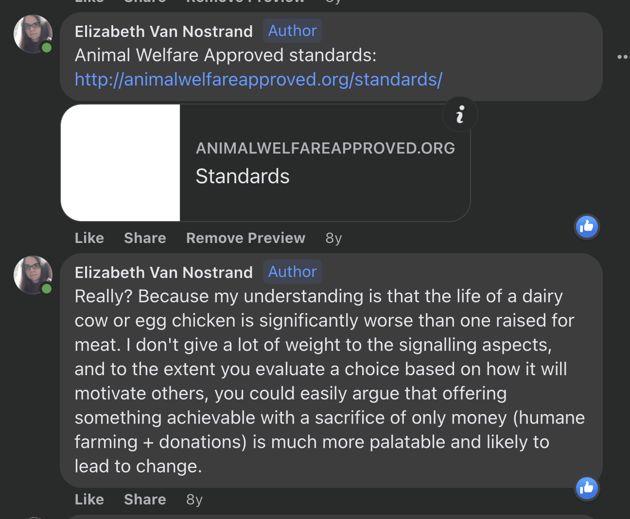 I do feel like vegan advocates are entitled to a certain amount of defensiveness. They encounter large amounts of concern trolling and outright hostility, and it makes sense that that colors their interactions. But that allowance covers one comment, maybe two, not three to eight (Wilkox, depending on which ones you count).