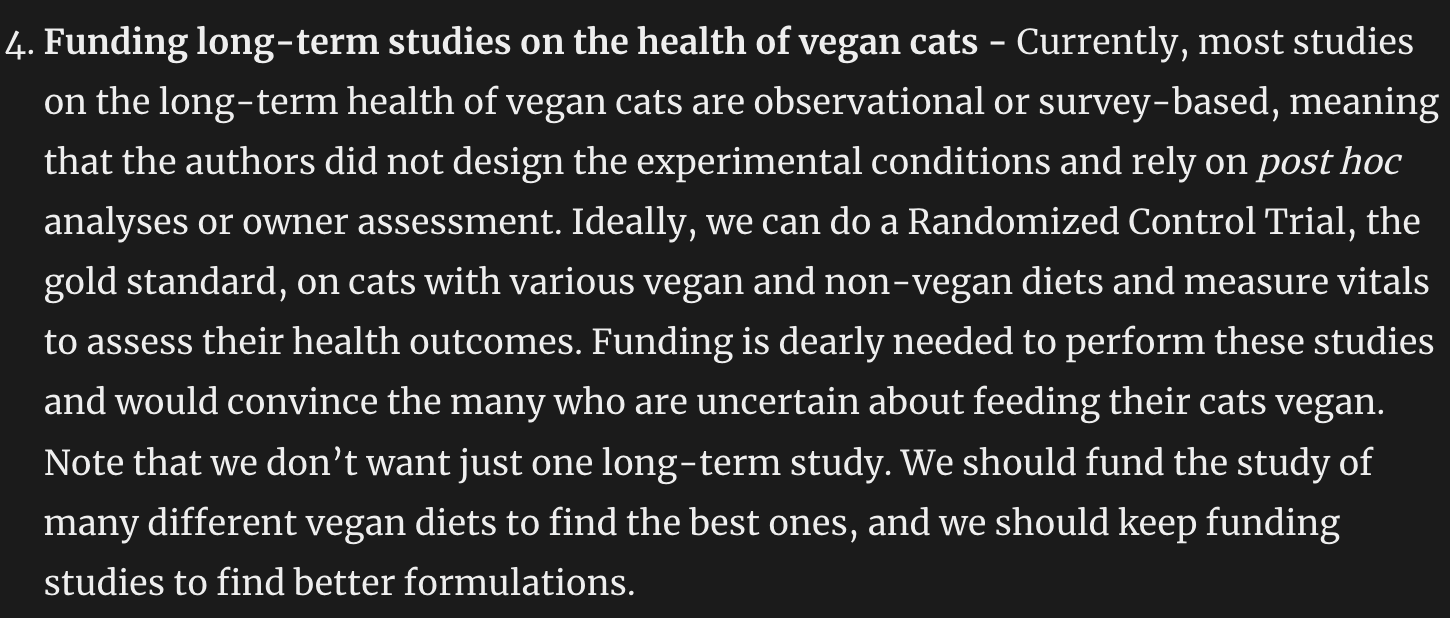 A good example of this is from the post “Getting Cats Vegan is Possible and Imperative”, by Karthik Sekar. Karthik is a vegan author and data scientist at a plant-based meat company.
