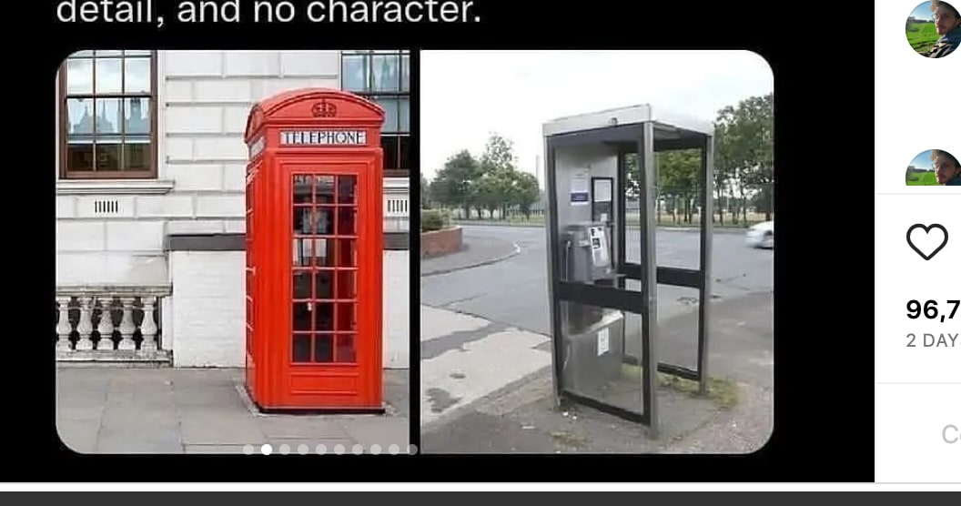 More examples for exploring your perception of life abound on the internet. The lack of human care and lifelessness of the right-hand exhibits below, shared by #GoodUrbanist @wrathofanon on X are self-evident.