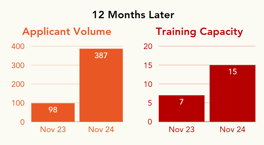 Volunteers sign up because they need experience to be competitive for paid roles. Within 3 months of completing our programme, the majority go from unemployable to paid employment. We're now getting more and better applicants: