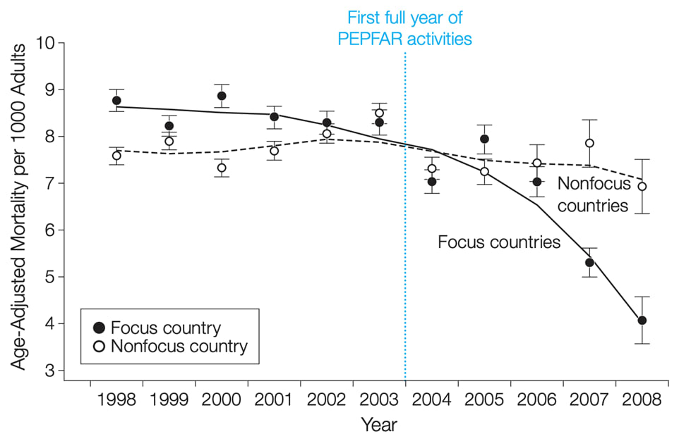 Figure 1. Adult mortality in PEPFAR focus and non-focus countries (from Bendavid et al 2012, JAMA)