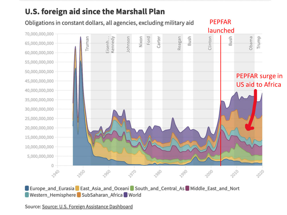 First I'd like to thank (as a public health guy working in healthcare in Uganda) the American people on the forum for all your taxes you have poured into PEPFAR. This program has been one of the great successes of the late 20th/21st century, and required a rare kind of large scale commitment and thinking that is vanishingly rare. Americans should feel proud that your tax dollars achieved so much more than they would have spent locally, an incredible gift for the poorest region of the world.