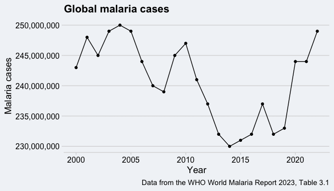Unfortunately, 2015 would prove to be a turning point, and by 2022, worldwide malaria cases are as high as they have ever been[1]: