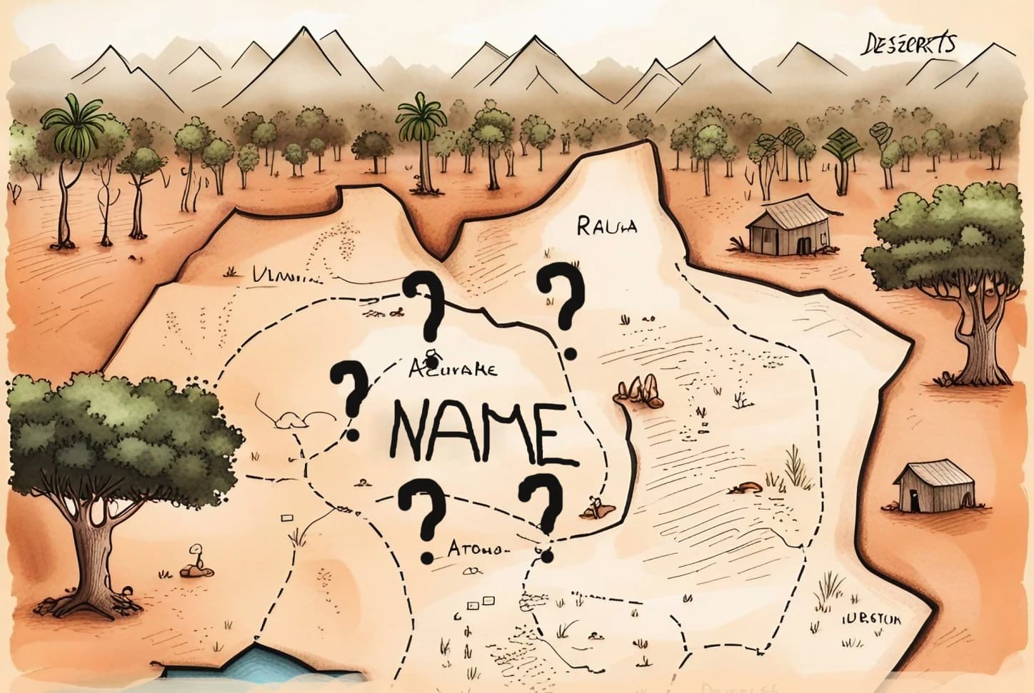 A fictional map, showing a sparsely populated region and a place with unknown name.