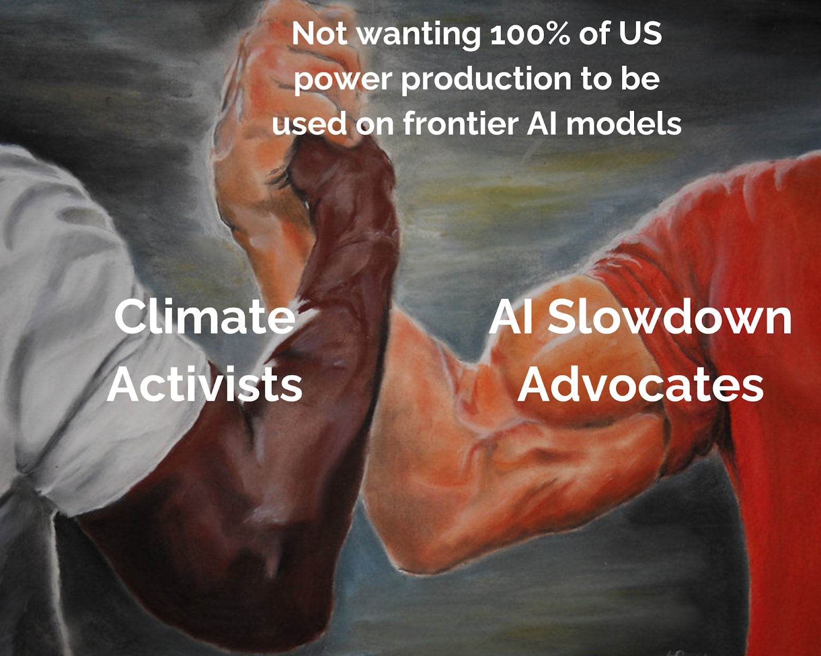 This scenario creates a natural alignment of interests between climate advocates and those concerned about the risks of rapid AI development.