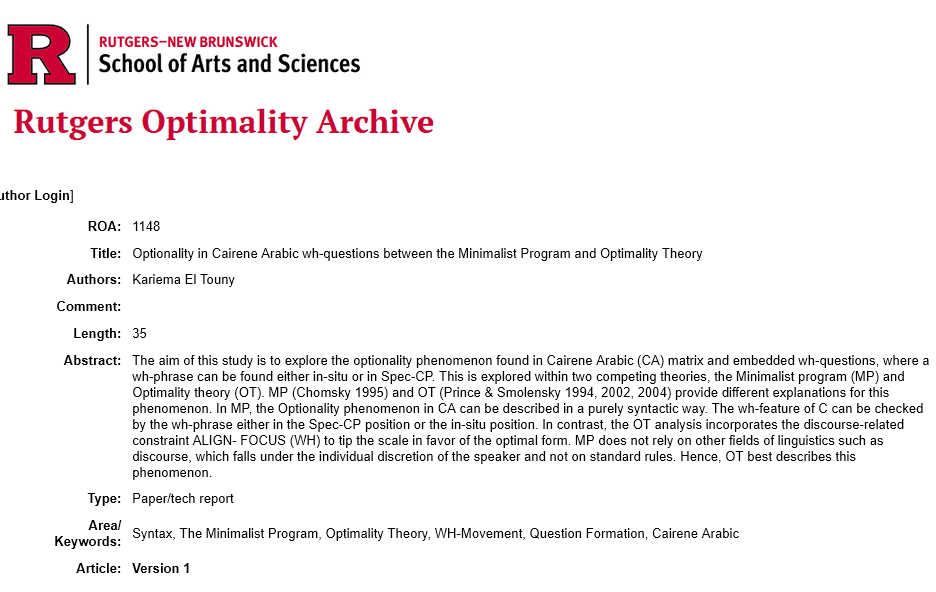 Rutgers Optimality Archive is what I call an institution dedicated to the public good. It’s where I published my MA thesis and a conference article. All you had to do was upload your work, provide an abstract and keywords, et voila, your hard work is there for anyone to download and credit you for it without your being affiliated with an institution.