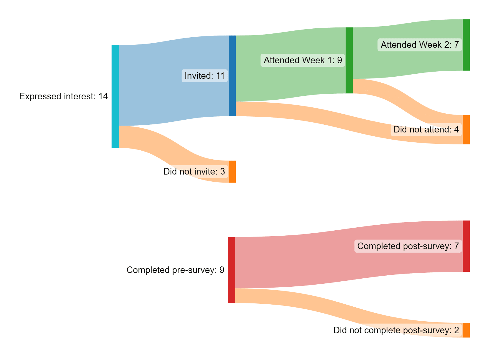 We kept track of participant flow and experience throughout the course, and checked up on issues that arose during the course activities