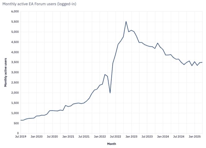 When I wrote that post, my role was focused on the EA Forum, and I had intended to spend the majority of my effort on the EA Forum. However, my role and my team are in flux right now, primarily in order to better align with CEA’s strategy. I’m currently running the CEA Online Team, and so far in 2025 we've broadly been spending a smaller portion of our resources on the EA Forum over time[1]. I think we need to be careful, because I still believe strongly in what I wrote in my previous post, and I have a worry that reducing the resources we spend on the EA Forum does risk losing most of its value[2]. But there are always tradeoffs, and hopefully we can figure out the right balance between working on the EA Forum and working on other projects[3] in service of CEA’s overall strategy.